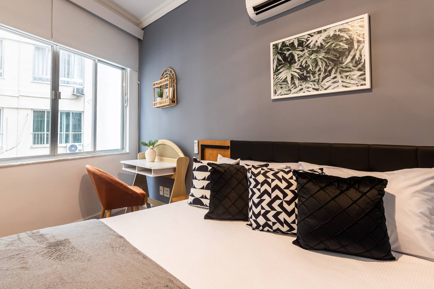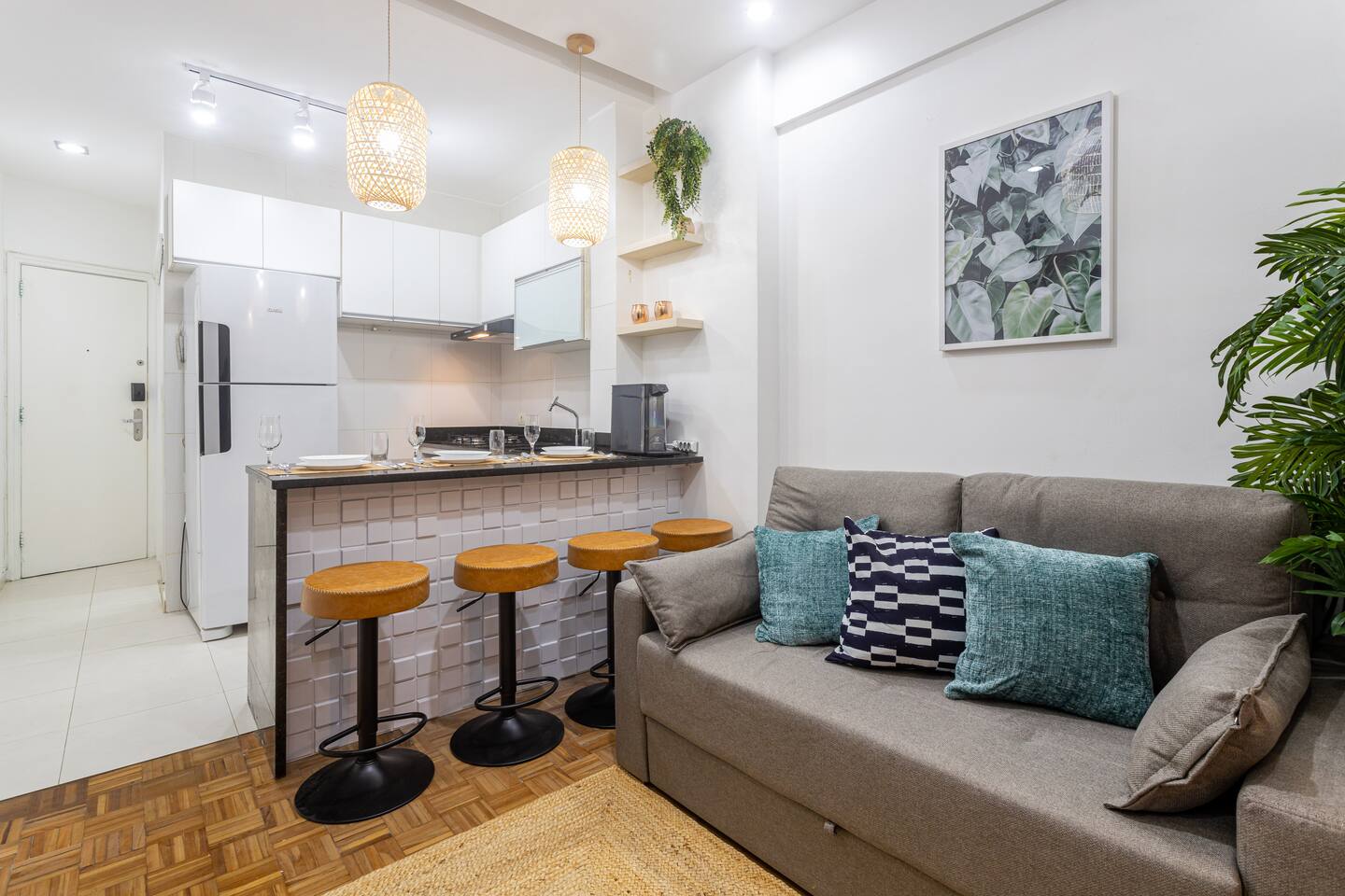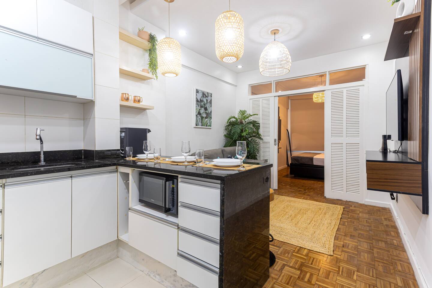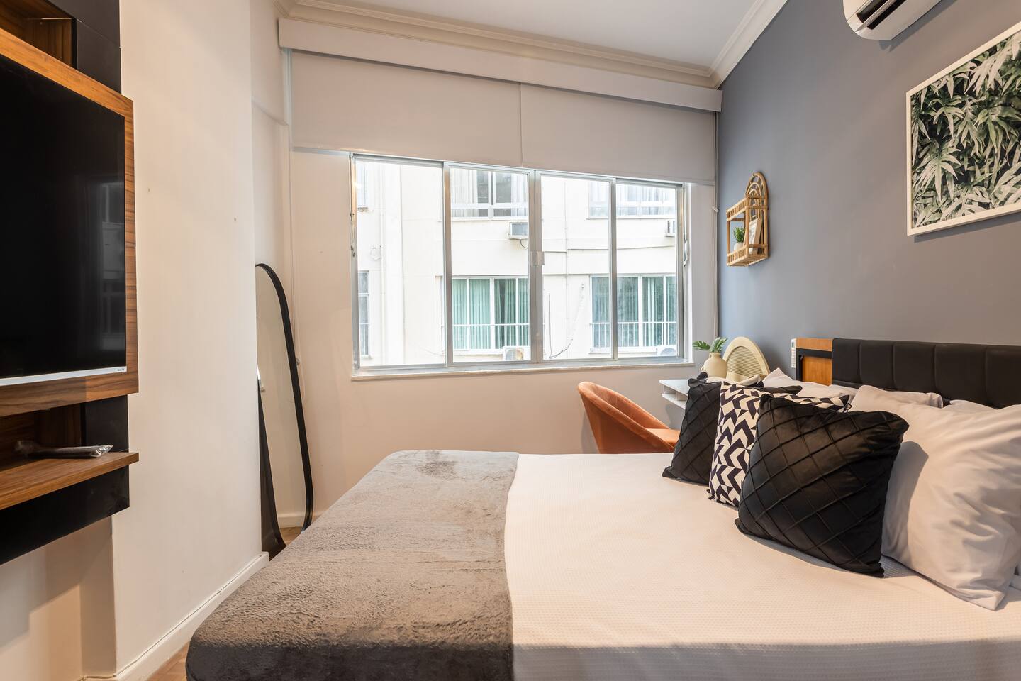 Localização privilegiada a uma quadra da praia mais famosa do Brasil, Copacabana. Em uma rua tranquila, o Studio recém-reformado está a poucos passos de distância de lanchonetes e açaí, restaurantes, lojas, nightlife e estação de metrô. Walking score 98! Limpo e seguro, o prédio está equipado com câmeras de segurança e porteiro 24hrs. Vocês ficarão encantados com os diferentes toques de para tornar sua estadia mais agradável e confortável e curtir o estilo de vida carioca. Sejam Bem-Vindos :)