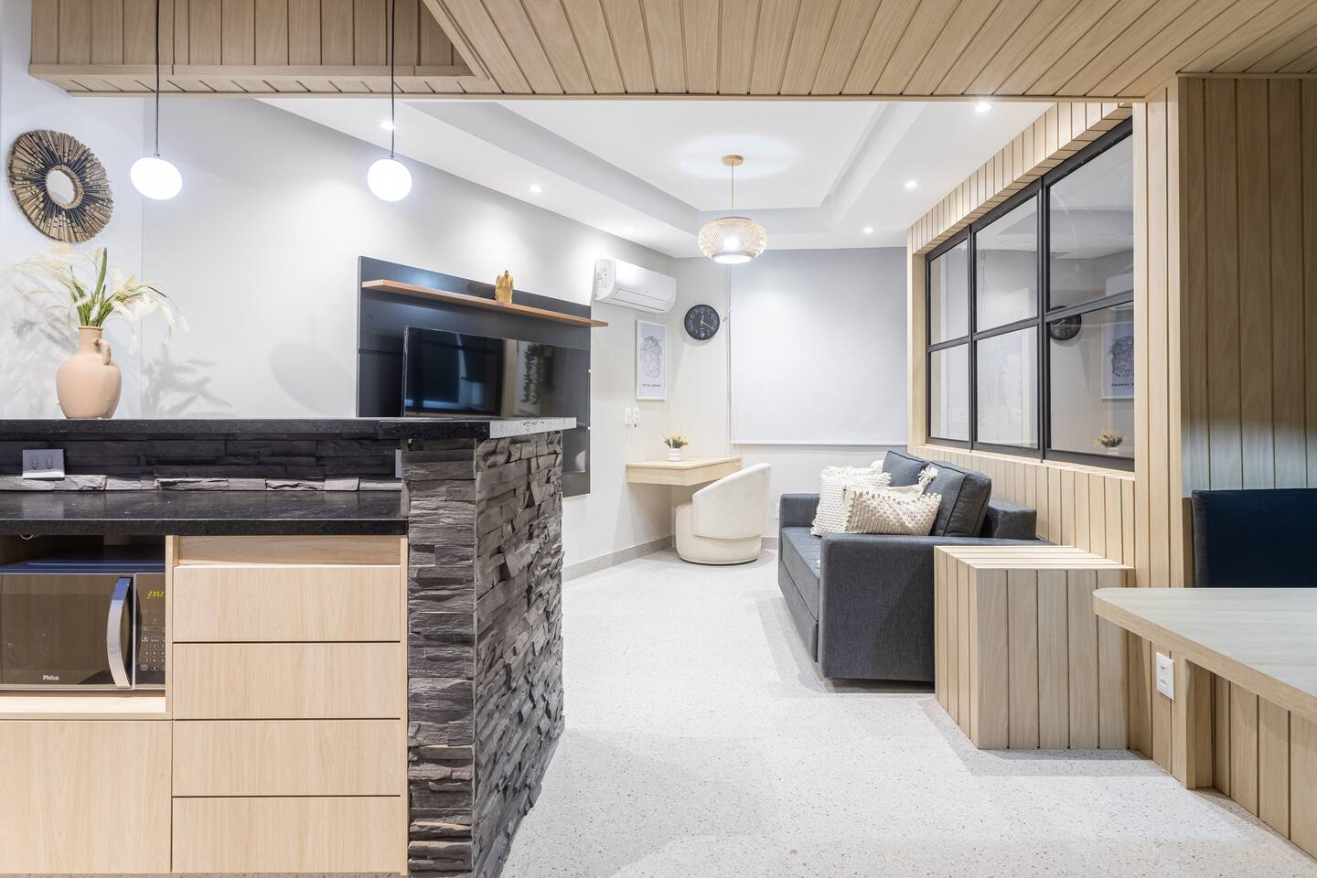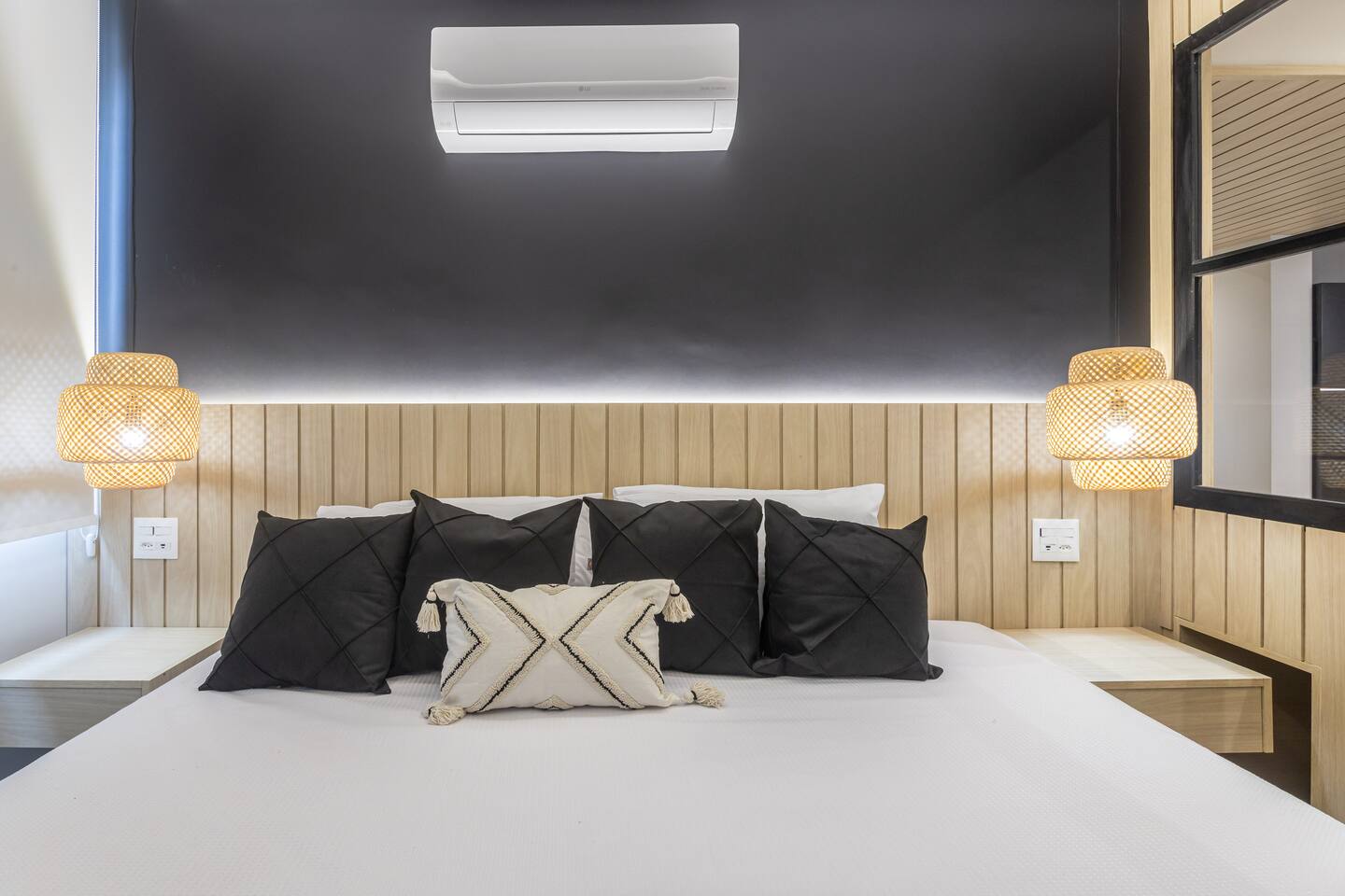 - King bed - High speed internet connection (350mb) - 2 x air conditioning - 2 x Smart TV (65" and 55") with cable and Netflix - Paid indoor parking nearby - Complete and equipped kitchen - Sheets and towels provided - Electronic lock with password - Cleaning in accordance with Airbnb enhanced process - Designated work desk