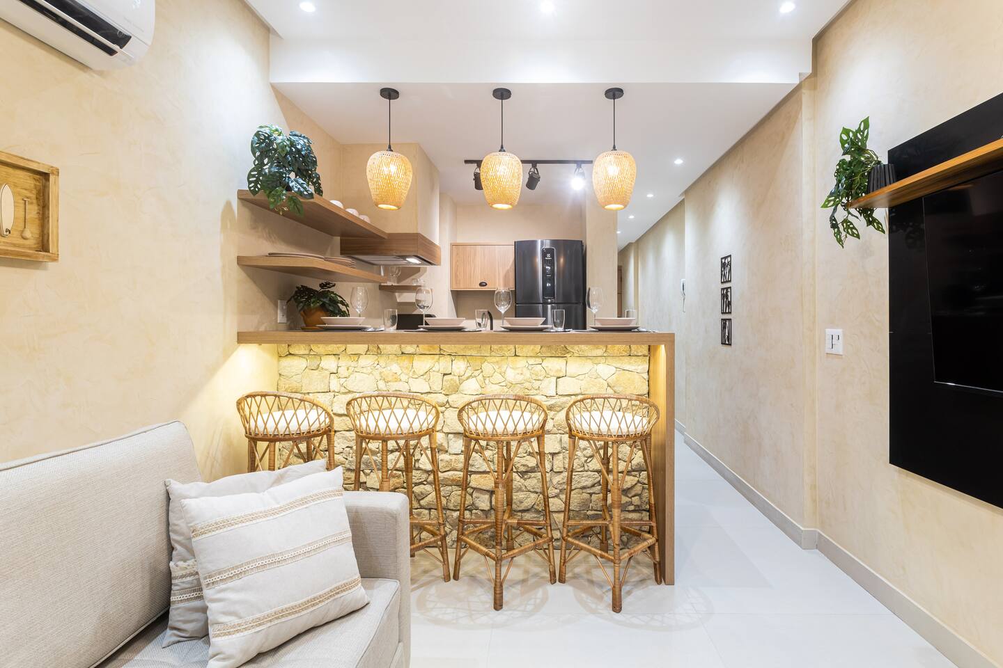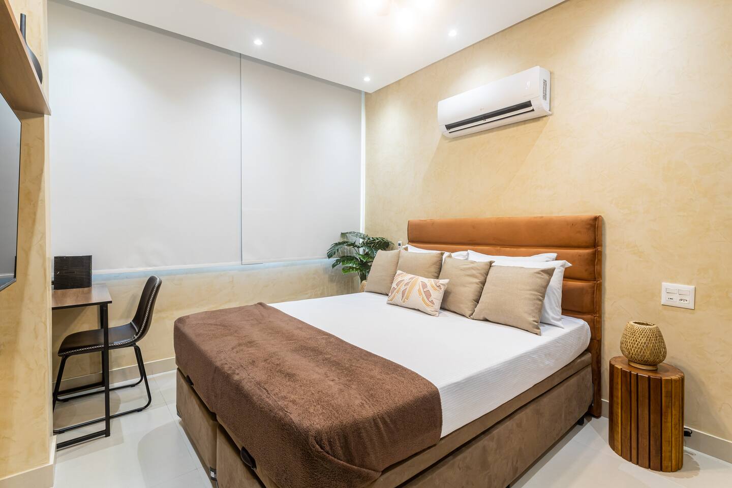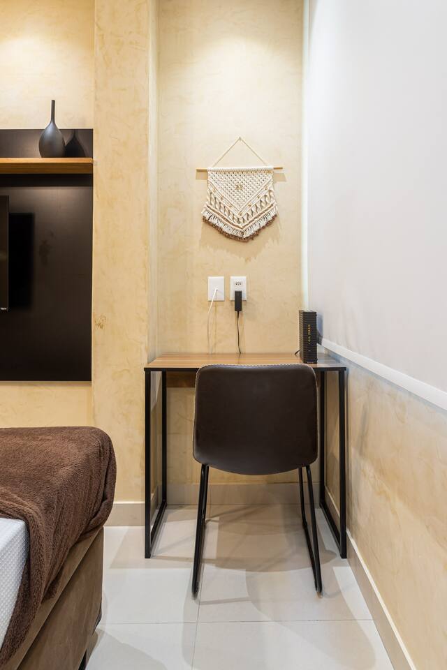 - Queen bed - High speed internet connection (350mb) - 2 x air conditioning - 2 x Smart TV (50" and 43") with cable and Netflix - Paid indoor parking nearby - Complete and equipped kitchen - Sheets and towels provided - Electronic lock with password - Cleaning in accordance with Airbnb enhanced process - Designated work desk