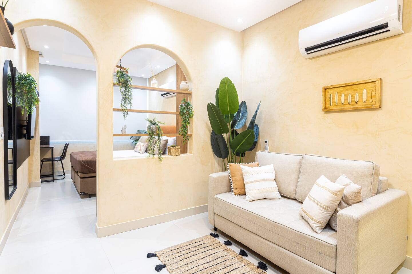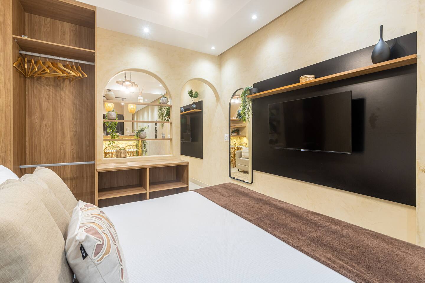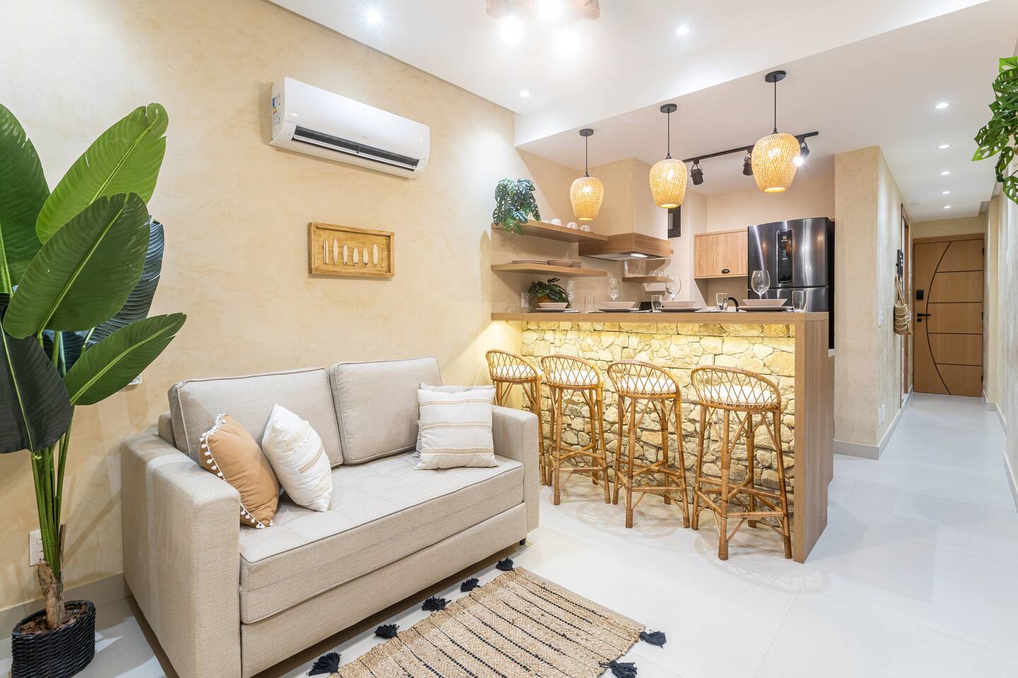 - Queen bed - High speed internet connection (350mb) - 2 x air conditioning - 2 x Smart TV (50" and 43") with cable and Netflix - Paid indoor parking nearby - Complete and equipped kitchen - Sheets and towels provided - Electronic lock with password - Cleaning in accordance with Airbnb enhanced process - Designated work desk